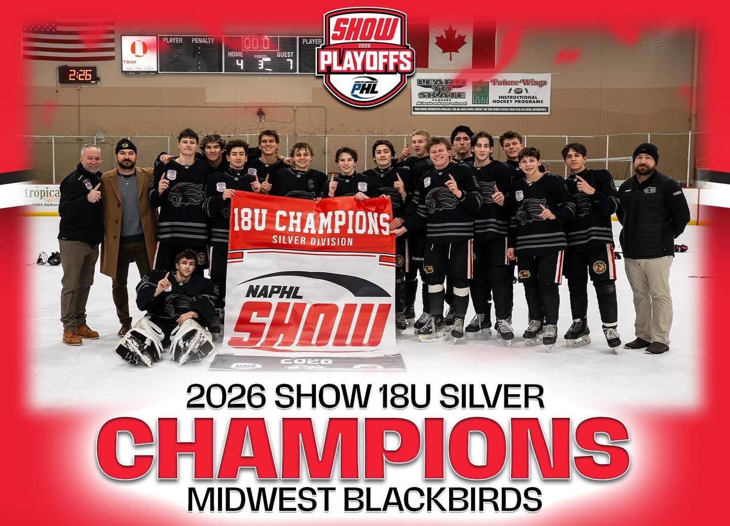 The Midwest Blackbirds are VERY PROUD to announce that the U18 Midgets have been accepted into the newly structured NAPHL Showcase Series for the 2025-2026 Season. Maximum Exposure for our players to Jr A and College Programs at both the ACHA and NCAA levels. Blackbird players will take advantage of unmatched exposure and development. IT'S GREAT TO BE A BLACKBIRD!